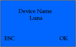 e. The device name should be displayed. The device name should be Luna as shown below. Press ESC to return to the Device Info Menu and proceed to step 2.