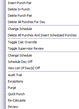 Delete All Punches For Day - Selecting this option will delete the punches for that specific day.