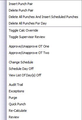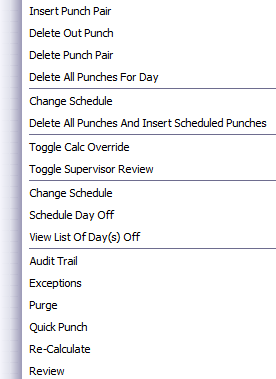 Delete All Punches For Day - Selecting this option will delete all the punches for that specific day.