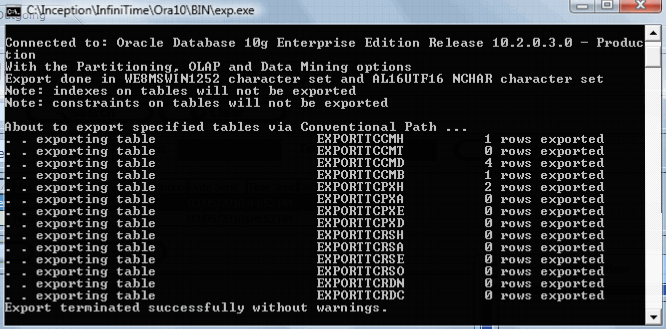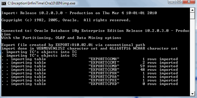 After preparations are complete a command prompt will display while the escort data is imported to the InfiniTime Database.
