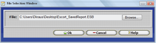 Print Saved Report Selection Criteria - The Print Saved Report Selection Criteria Button allows users to print a specific saved report. When escort windows are exported Saved Reports attached to buttons on the escort window are also exported. A copy of the original saved reports will be imported with the escort, including settings on the General Tab, Email Tab, Options Tab, and Auto Report Schedule. Selection Criteria settings are database specific and must be reconfigured after importing an Escort and associated Saved Reports.