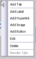Add Label – Adds a label to the specified tab. Used to label buttons, hyperlinks, or images.