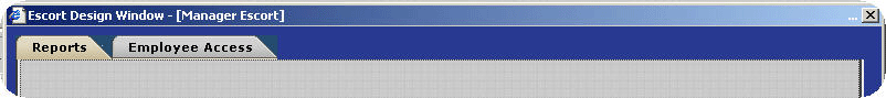Design - Opens the Escort Design Window for the selected Escort Window. In order to add buttons, labels, images, and tabs for an Escort Setting Description using the Escort Design Window an escort Setting Description must first be created using the Insert Button.
