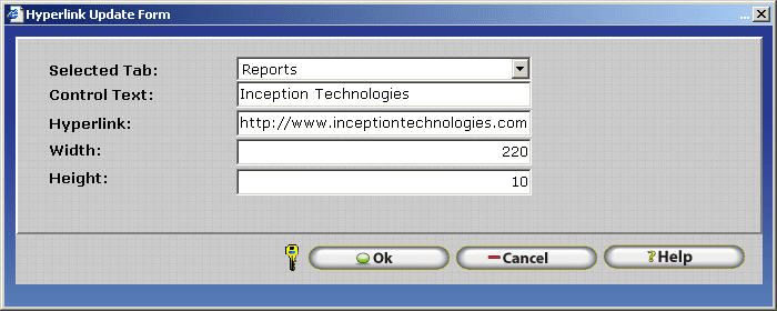 Add Hyperlink – Adds a hyperlink to the specified tab. Used to link to a web site, ftp site, or file.