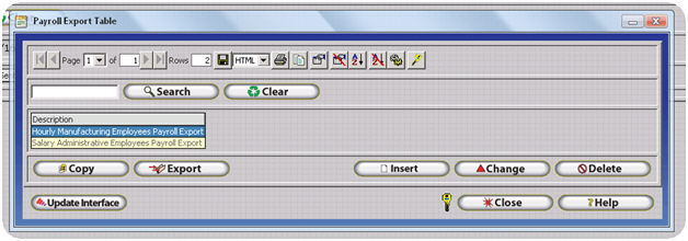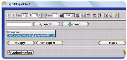 · Click Insert on the Payroll Export Table to Open the Payroll Export Update Form.