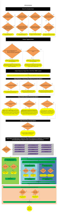 For full clarity, Logic Flow documents are provided which show exactly how the Payroll Export tool functions. Thumbnails for each diagram are shown below - simply click on the thumbnail to view the full diagram