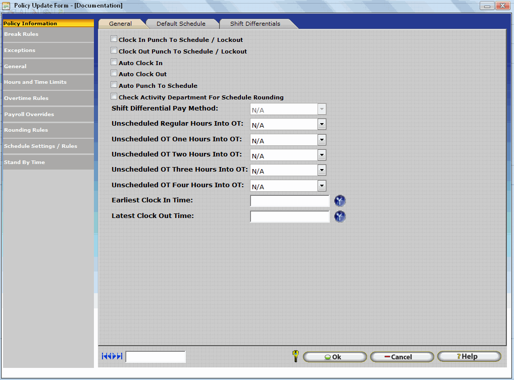 This will set the latest time a punch can be recorded as OUT. InfiniTime does not change the employee's punch though hours for the day will be calculated as if the employee punched out at this time. For example if the Latest Allowed Clock Out Time is set to 4:00 PM and an employee punches out at 5:00 PM the punch will be accepted and shown as 5:00 AM though hours for the day will be calculated as if the employee punched out at 4:00 PM.